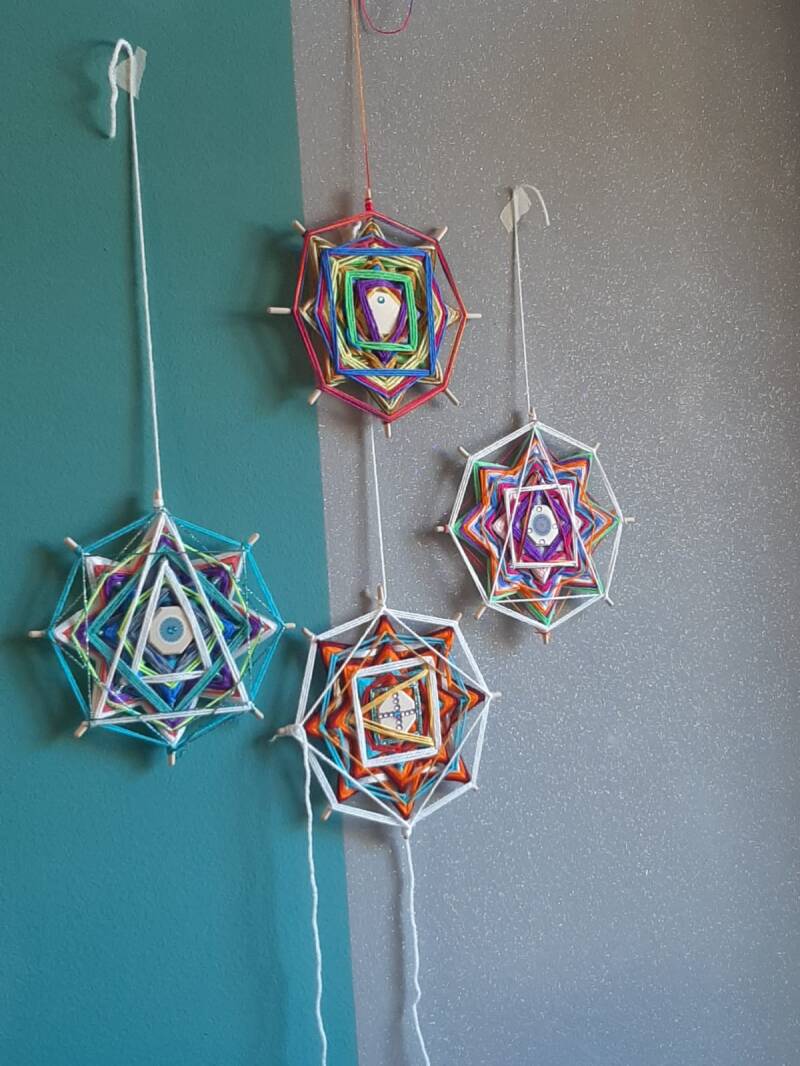 Tessitura Sacra Ojo de Dios antica tecnica con la quale si creano mandala che armonizzano ambiente. I laboratori possono essere svolti individualmente o di gruppo